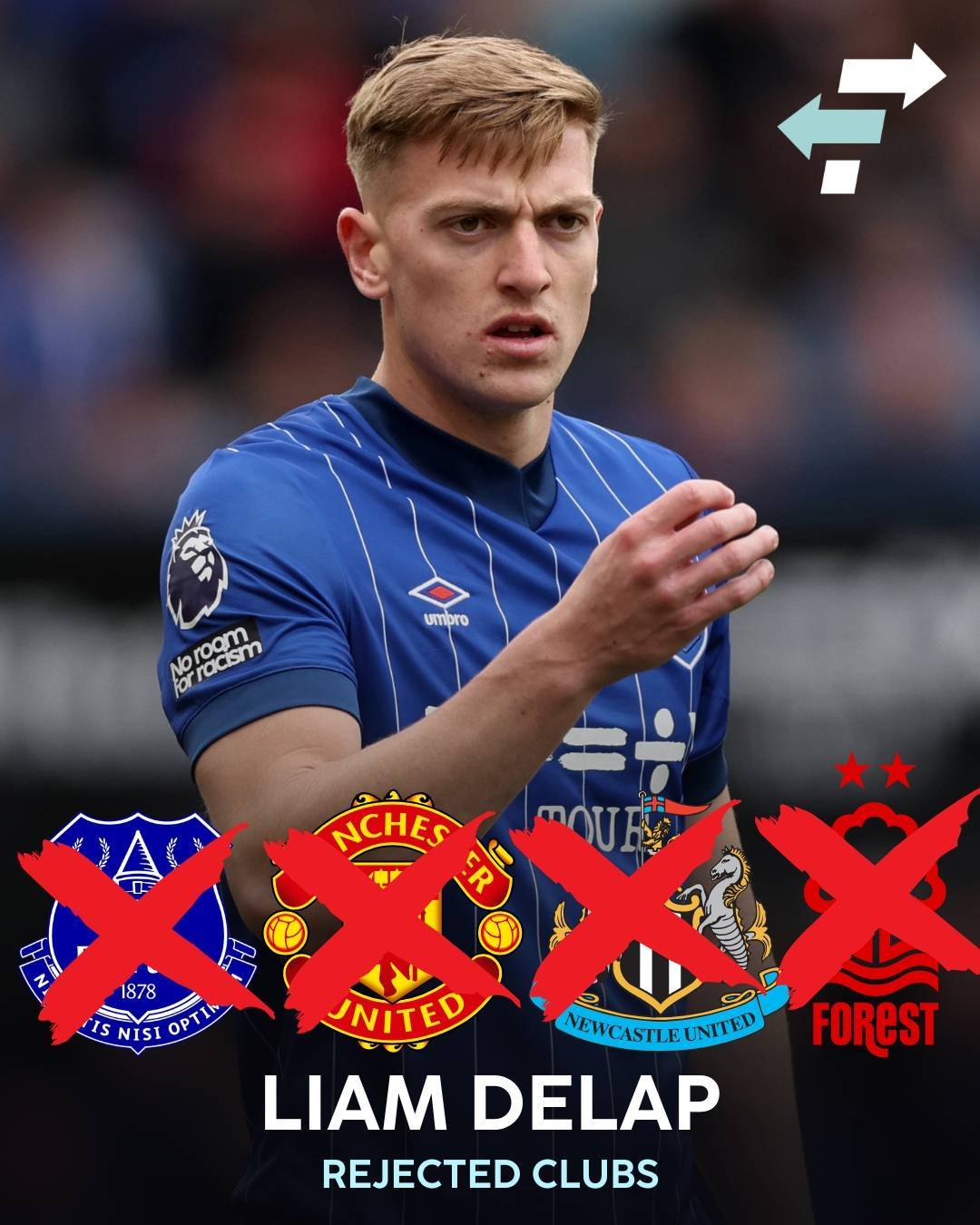 然而,无论德拉普在伦敦的际遇如何,无法得到他都给曼联的夏窗转会带来了麻烦,因为老板吉姆·拉特克里夫爵士将找不到另一个性价比如此高的球员了。一大批新的前锋,又开始与曼联联系在一起。